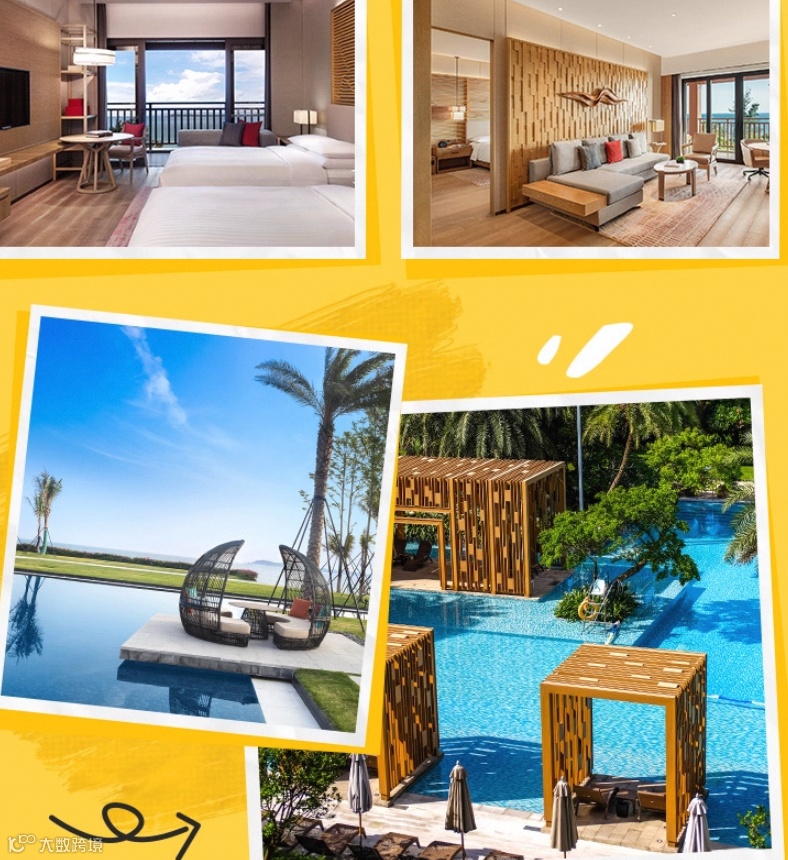 酒店地理位置得天独厚,坐拥被《中国国家地理》评为“中国最美的八大海岸”之一的金沙湾。酒店有客房及套房,绝大部分配有私人观景阳台,可欣赏金沙湾海天一色的美景或东南亚风情园林景观。不同的房型为您提供多样的下榻空间。现代化室内设计灵感源自当地大鹏古城非物质文化遗产,并结合深圳渔家文化特色,客房露台宽敞舒适,可凭栏临风,尽览波涛海韵之美。