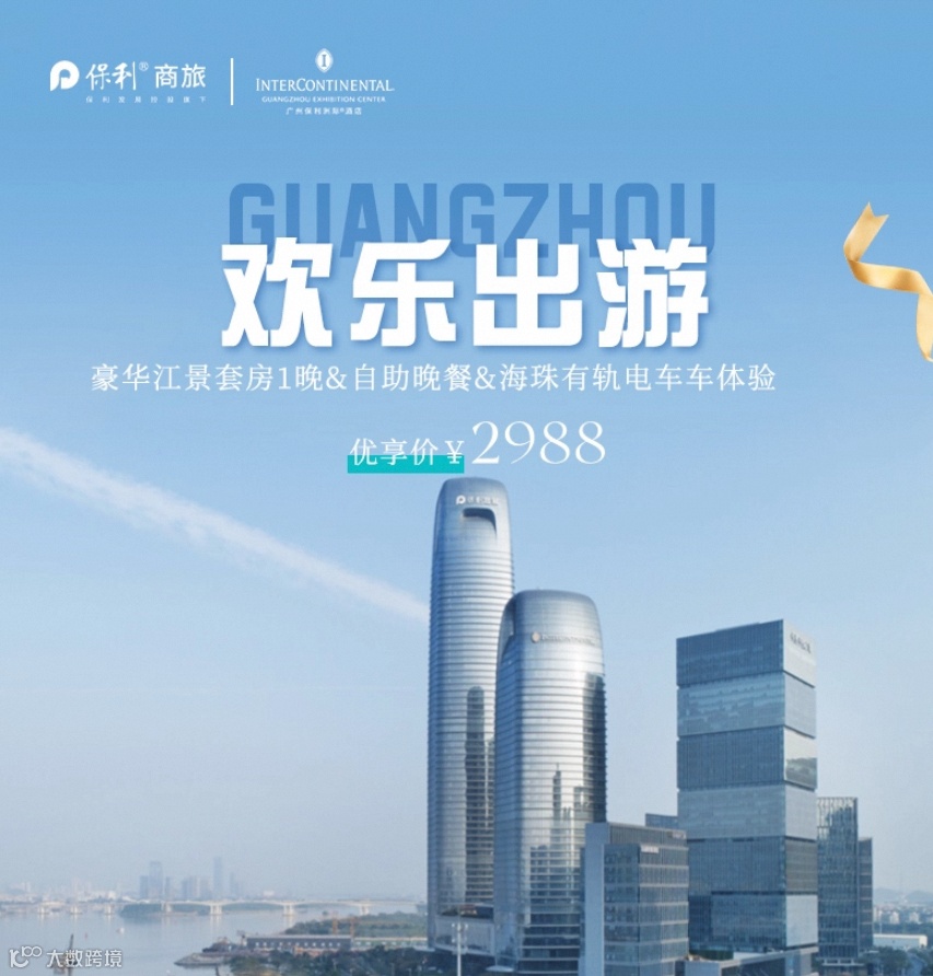 【秋季乐游】广州保利洲际江景套房1晚+自助晚餐+有轨电车体验=2988元起