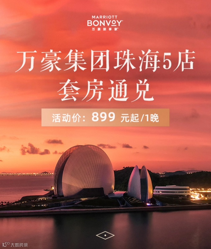 万豪集团的珠海5店套房通兑,包括2大1小早餐、特色套房、4店不加价,给到了珠海华发万豪酒店、珠海华发喜来登酒店、珠海中海万丽酒店、珠海瑞吉酒店、珠海东澳岛万豪度假酒店。