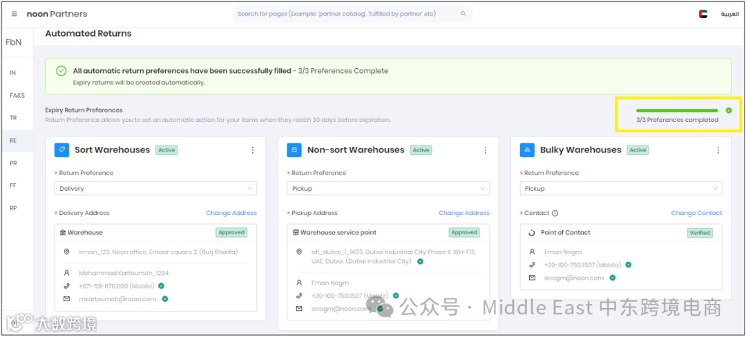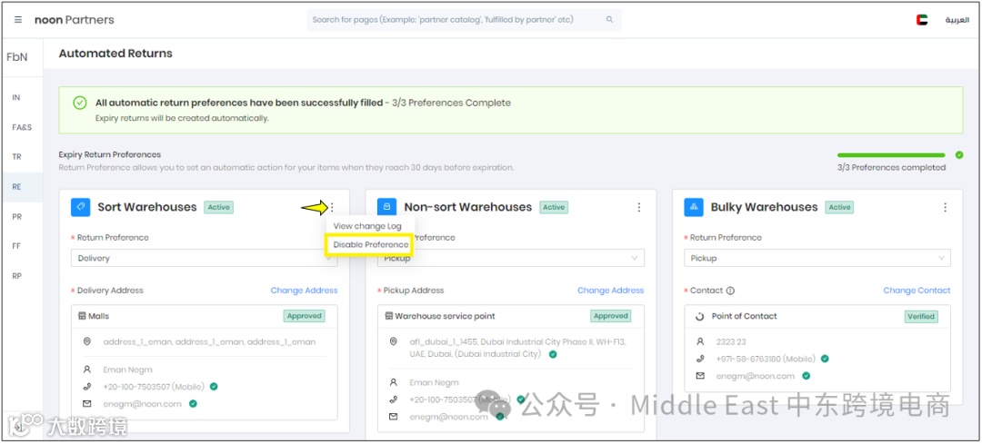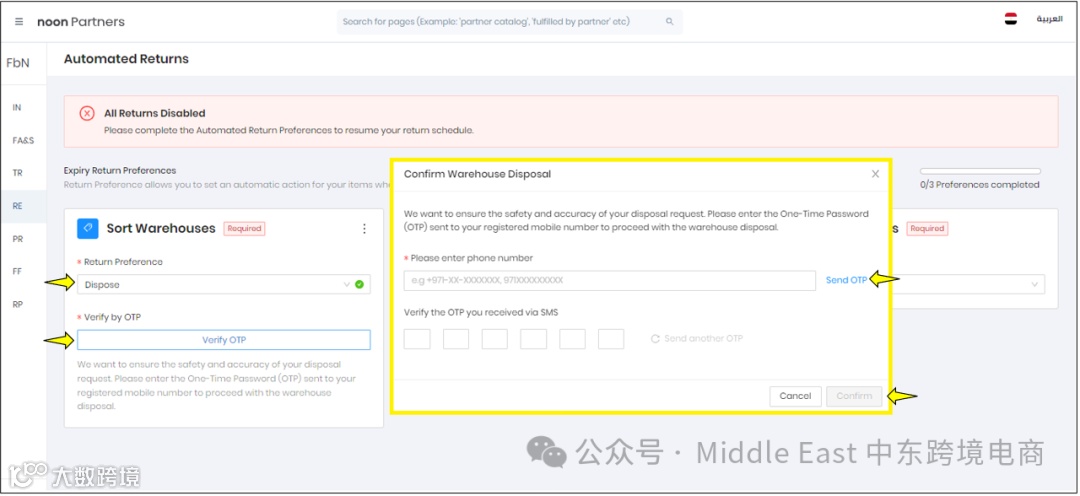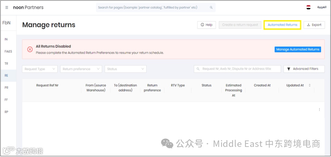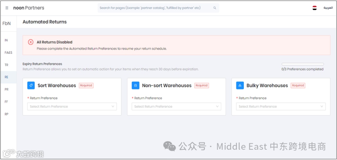 但是卖家不能禁用在noon仓库存储的过期和非销售老化库存的Automate RTV首选项。
