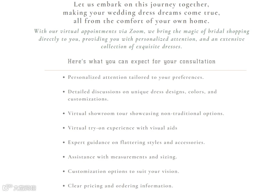 婚纱的选择、细节的搭配、尺寸的更改、定制化服务,往往是需要消费者与设计师进行直接沟通的,以避免因为理解偏差,而导致成品出现问题。