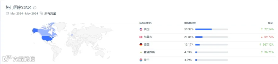 根据similarweb数据显示,Flora & Lane官网的流量主要来自于美国(50.37%)、加拿大(21.84%)、德国(13.17%),可见其就是以北美为主要目标市场的。美国婚纱市场以多样性和个性化为主导,因此打造独特设计风格的品牌,会是进军美国婚纱市场的最佳策略之一。
