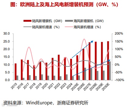 关注风机、风机零部件环节以及国内外海风加速发展带来海缆、桩基等环节投资机会。