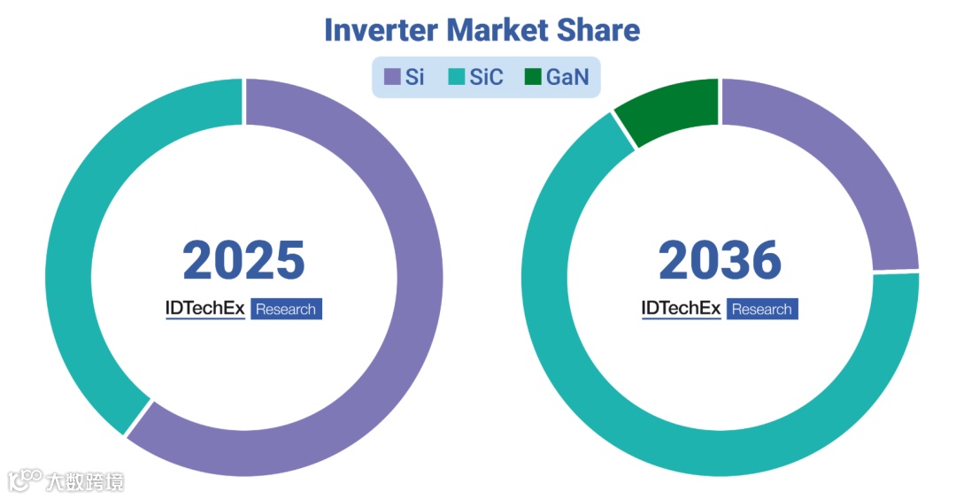 图3:SiC MOSFET市场份额将持续增长,其中1200V器件助力800V架构;GaN预计将从2026年起在牵引逆变器市场崭露头角