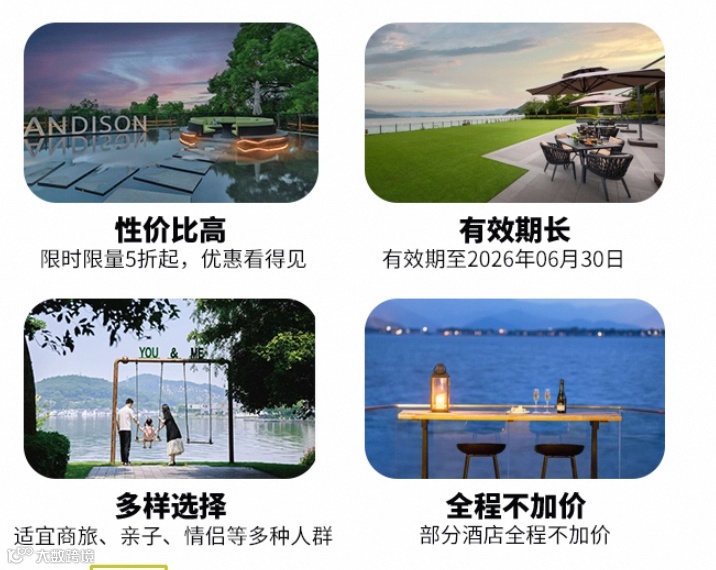 这次给到的是畅游江南多地通用的套餐,覆盖20座城市30家酒店,包括千岛湖|衢州|象山|绍兴|南浔|无锡|建德|龙游|余姚|杭州|天台|金华|仙居|德清|景德镇|宁波|上饶|浦江|武义。都是江南人文荟萃、风景优美之地。