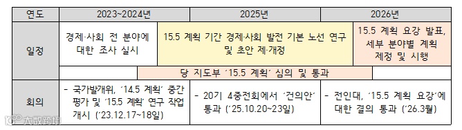 - 건의안은 중국공산당 20기 중앙위원회 4차 전체회의(20기 4중전회·10.20~23일)에서 심의, 통과된 것으로, 최고지도부가 2026~2030년 중국 국정운영 청사진인 ‘국민경제와 사회발전 제15차 5개년 계획’(15.5 계획)의 정책방향을 제시한 것임