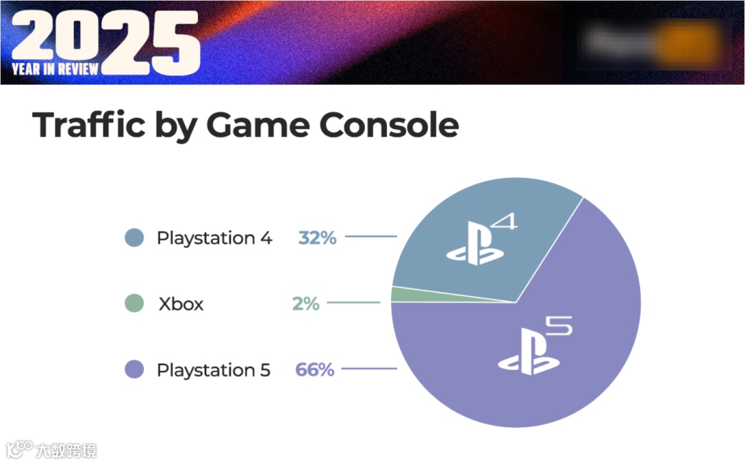 PS5用户贡献了66%的游戏相关流量,而Xbox流量同比下降69%,占比仅剩2%。