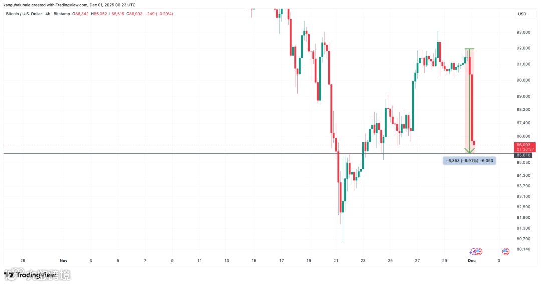 这使得金价从10 月 6 日创下的 126,000 美元的历史高点下跌了 32%,并伴随着衍生品市场的大规模清算。