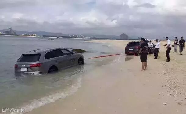 去年,奥迪的公关公司拉上国内各种知名不知名的媒体在海南三亚进行全新Q7的媒体试驾活动,结果有媒体记者体验情况如下图,直接开海里了: