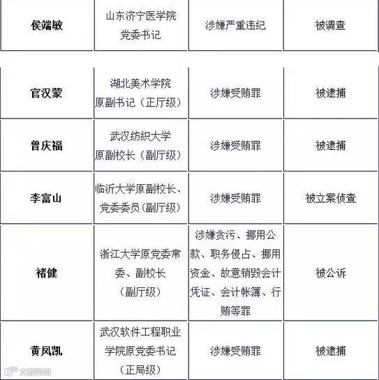 2015年以来部分“落马”高校领导干部一览表