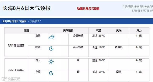 不过,天气预报显示,8月6日当天长海地区的风力为4-5级……呃,传说中的大风呢?至少在长海县气象服务中心的证明上,它是存在的。