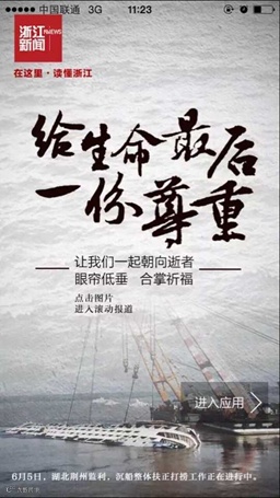 6月1日,长江客轮“东方之星”在湖北监利翻沉,连日来,救援行动众人瞩目,包括浙江新闻客户端在内的国内各大媒体主办的新闻客户端,以及部分网站客户端,纷纷投入“界面比拼”,移动端平台已然成为各大媒体发布相关新闻及救援最新进展的主阵地。