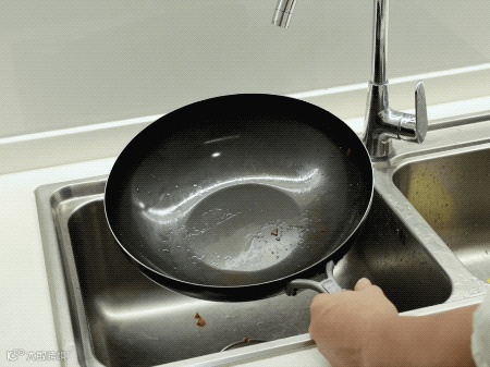 注:尽量不要用清洁剂清洗这口铁锅,因为清洁剂有较强的去油能力,会破坏铁锅表面形成的油膜,会使铁锅遇水生锈。