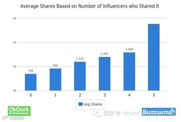 下表是有1个-5个有影响力者,分享转发文章后带来的平均分享量,可见“有影响力者”推动分享转发还是有重要价值的。