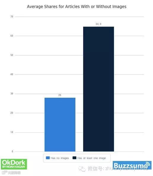 在文章里至少插入一张照片,平均分享转发率为64.9%,明显高于无图文章的平均分享转发率28%。