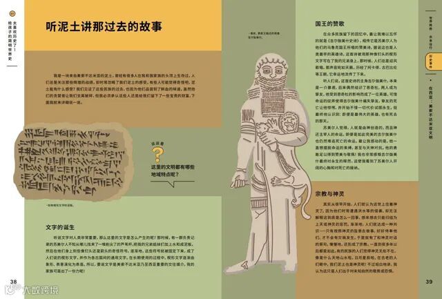 书里还提出了许多小问题,诸如:你能通过丝绸之路买到什么、又能卖出什么呢?古巴比伦的国王为什么要修建空中花园呢?罗马共和国和希腊城邦有哪些差异呢?