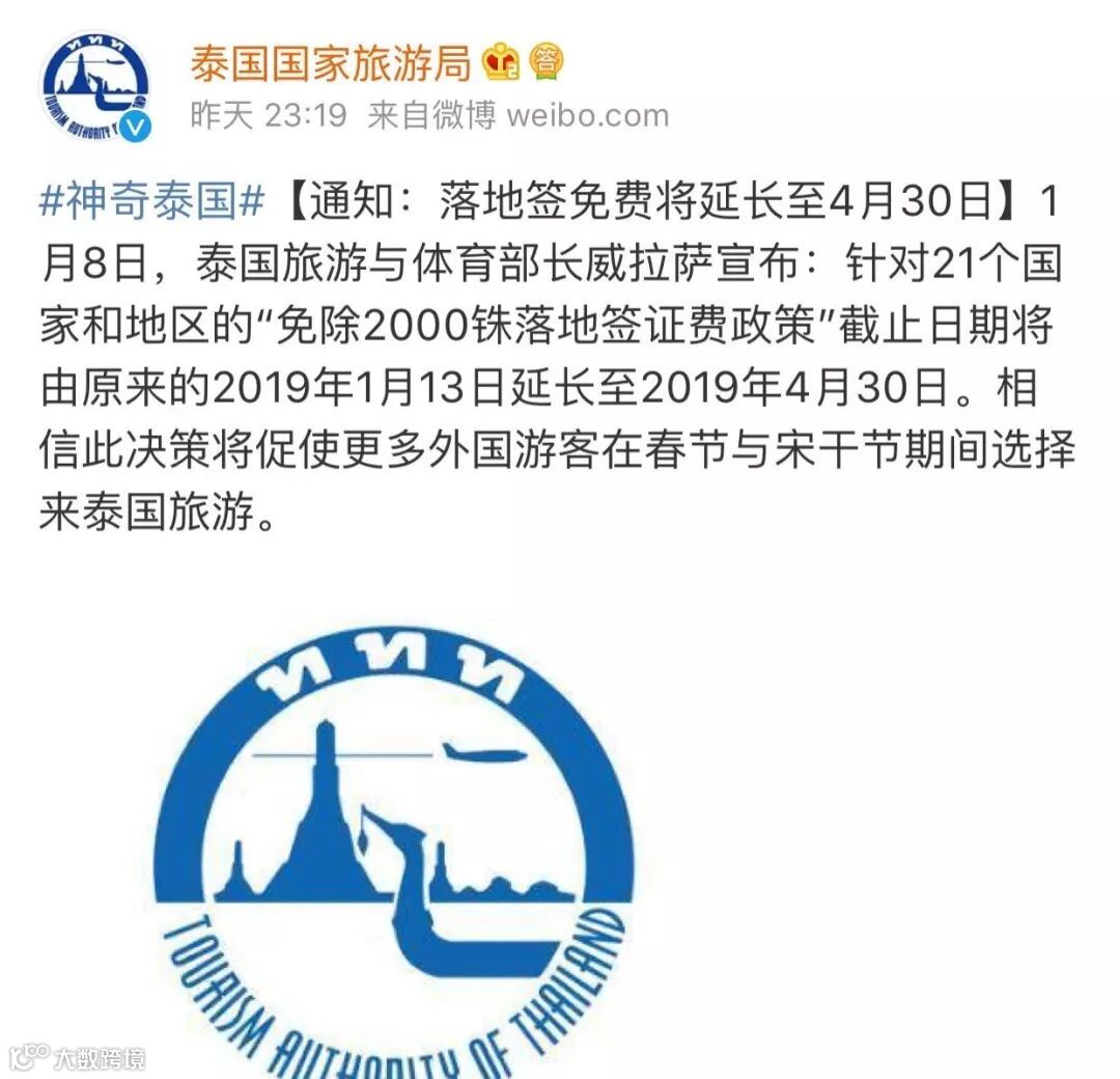 关注签证政策的朋友们可能知道,去年11月开始,泰国移民局开始试行免费落地签政策,大致就是从2018年11月15日开始至2019年1月13日,免除包括中国在内的21个国家和地区的游客短期单次签证(落地签证)费用2000泰铢。