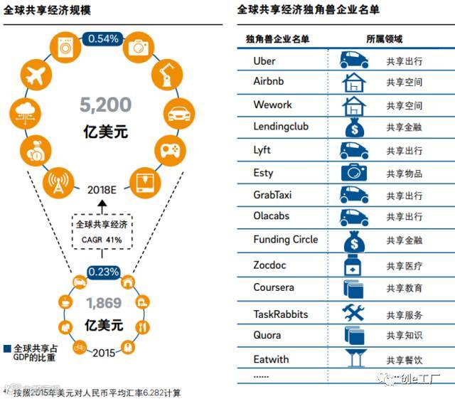 中国目前已经形成625亿美元的共享经济市场,并保持54%的高速增长,到2018年有望达到2300亿美元,全球共享经济总规模将增长至5200亿美元,中国在全球共享经济中的占比将由33%提升至44%,成为领军力量。