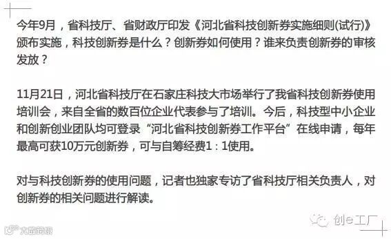 创新券是由政府向科技型中小企业和创新创业团队免费发放的权益凭证,主要用于鼓励科技型中小企业和创新创业团队充分利用高等院校、科研院所等创新服务提供机构的资源开展研发活动和科技创新,并可以抵押贷款。收取创新券的单位持创新券到指定单位兑换。