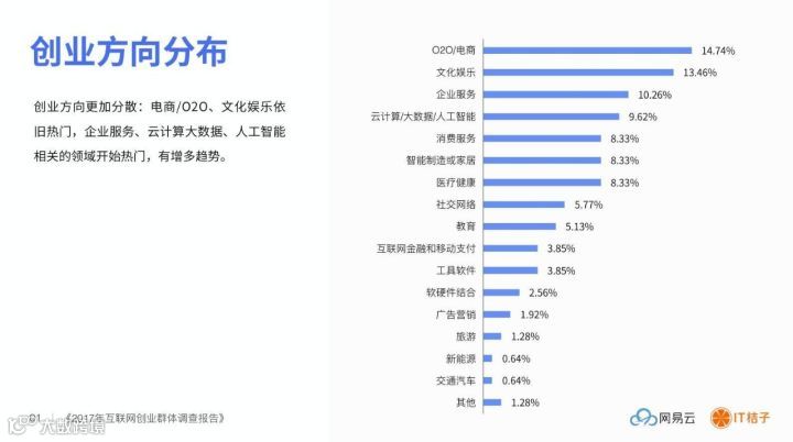 网易云联合 IT 桔子发布的《2017 互联网创业群体调查报告》显示: