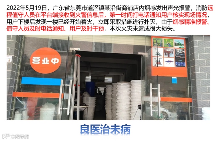 专业性更强:平台中心人员经过专业培训,对报警数据精准判断,区分误报和真实警情,避免恐慌和资源浪费。 提升安全水平:定期出具报告,通过数据反馈和分析,提升安全意识和管理能力,借助视频监控快速确认,实时掌握现场情况;缩短从发现火灾到响应的时间,最大程度降低火灾带来的人身财产损失。