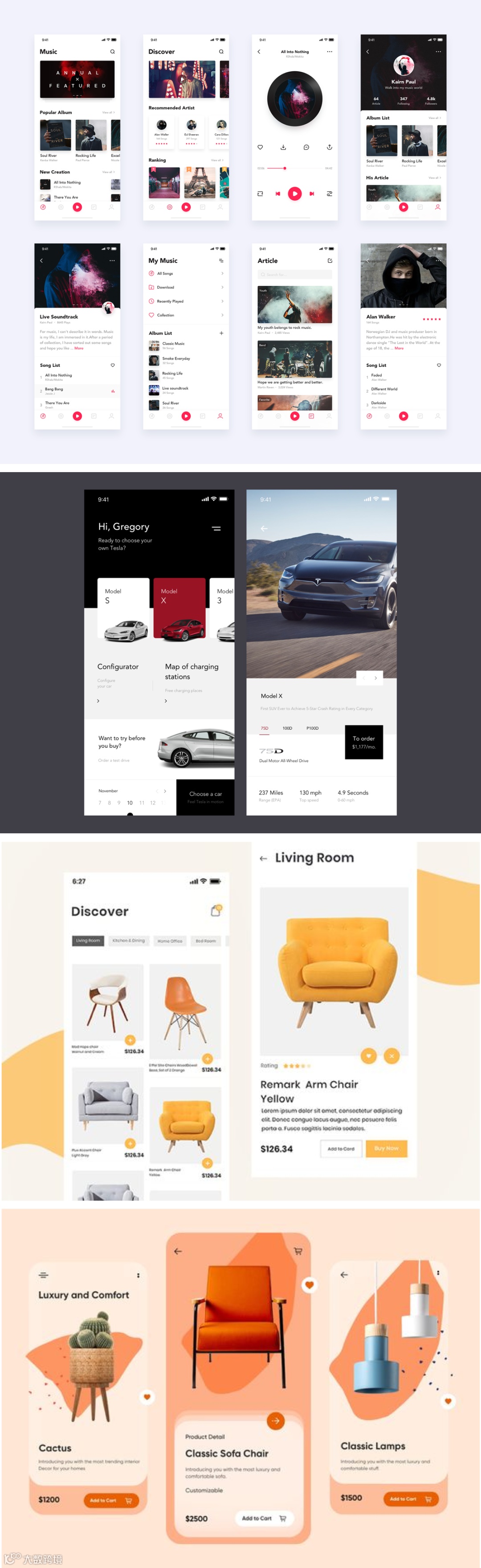 关于杂志化UI,是一个可以让UI界面焕然一新的风格语言。现阶段移动端设计同质化比较严重,用户通过产品图片了解产品和它的调性,因此我们尽量选择与产品匹配的图片。对版式布局的讲究、字体的层级、图片选择的苛刻,色彩的克制等使杂志风格在UI中应用毫无违和感,反而就是为了 UI 设计而诞生的。