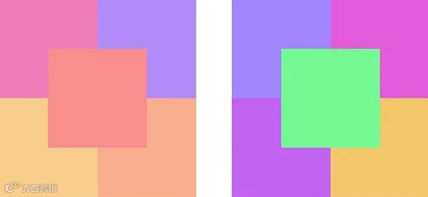 颜色本身就带有明度属性,即便我们在数值上一致,但视觉上依旧会有落差,比如蓝色本身明度就比黄色低。