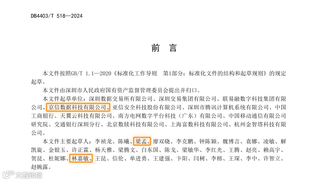 本文件由深圳市人民政府国有资产监督管理委员会提出并归口,主要起草单位有深圳数据交易所有限公司、深圳交易集团有限公司、联易融数字科技集团有限公司、京信数据科技有限公司、亚信安全科技股份有限公司、深圳市腾讯计算机系统有限公司、中国工商银行、天翼云科技有限公司、南方电网数字平台科技(广东)有限公司、中国移动通信有限公司研究院、交通银行深圳分行、北京数牍科技有限公司、上海富数科技有限公司、杭州金智塔科技有限公司。