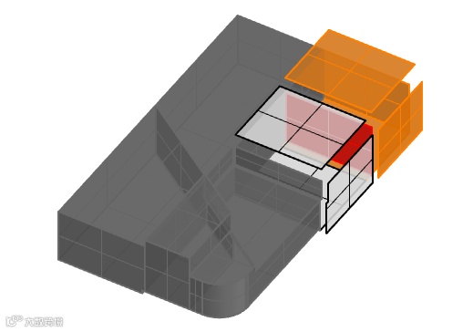 这是一个从空间元件提取几何的范例,每一个空间都是封闭的几何,例如下图中的橙色与浅灰色的方块表示两个独立的空间图元。