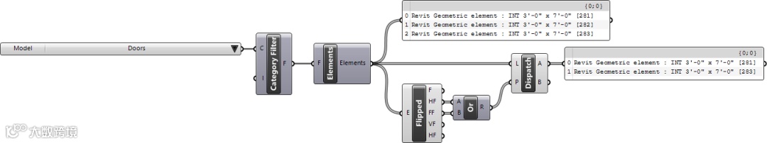 可以使用下面分享的 Flipped 运算器来检查一个图元是否被反转(Revit 支持不同的反转类型)。