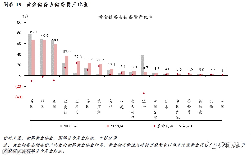 第三,非经济的因素。一些国家把货币武器化进行制裁,其他国家为了规避此类风险,也会选择持有一些实物储备资产。