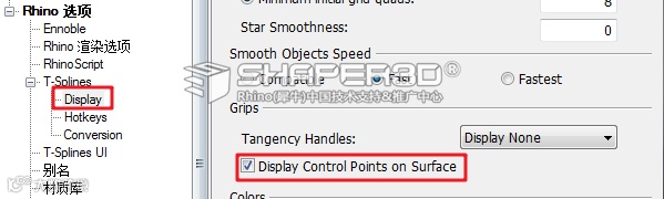 原因:在Rhino 5 中开启了切换成圆型控制点方式,而T-Splines 并不支持,因此控制点没显示出来。
