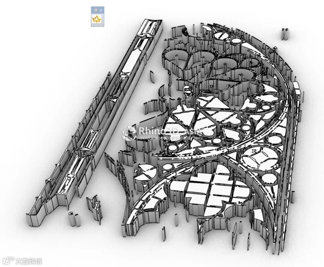 经由 Trace 转换后的 Rhino 曲线图