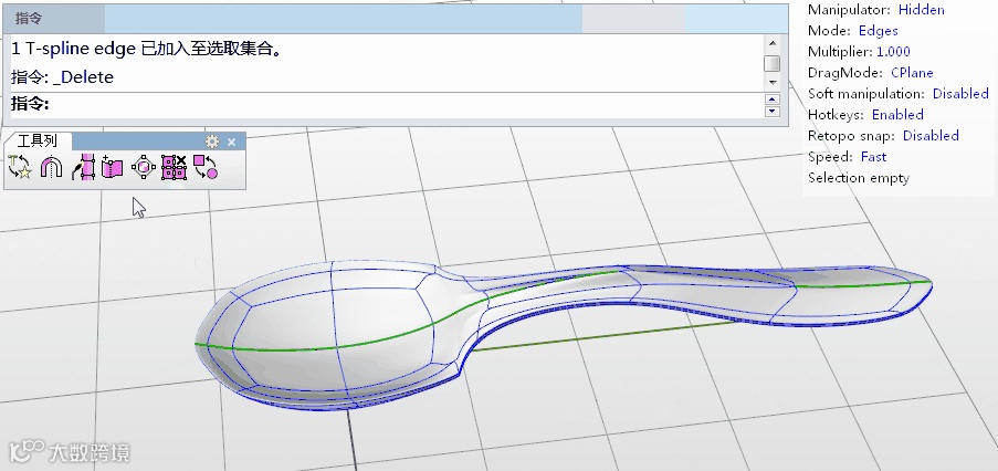 第一段:修改勺子上的聚拢点,改成四边面结构,简化面数