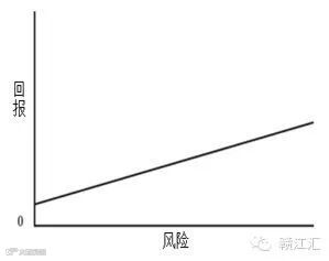 下面的第一幅图显示常规展现的风险和收益之间的关系。直线向右上倾斜,意思是这两个“呈正相关”:随着风险的增加,回报增加。