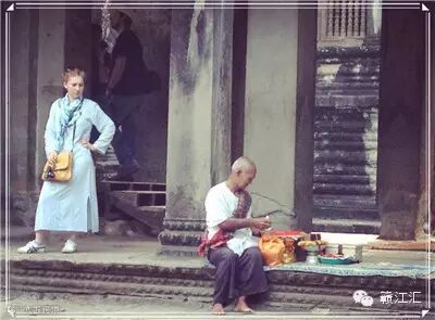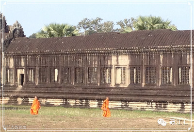 欲赏日出之盛者,不独于吾。吴哥寺内游人如织往来,群聚池岸,长枪短炮,俱对金乌,一时人头密集,较之天朝亦不遑多让。一位僧人一袭白衣,独自盘坐在廊阶尽头,中心主城巨大的阴影将他笼罩,周围有人来来往往,他只专注于在他的神前匍匐。红尘多熙攘,不动自在心。