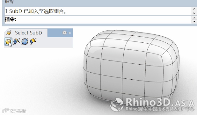 细分指令已支持对SubD 物件进行增加表面细分级别的操作。