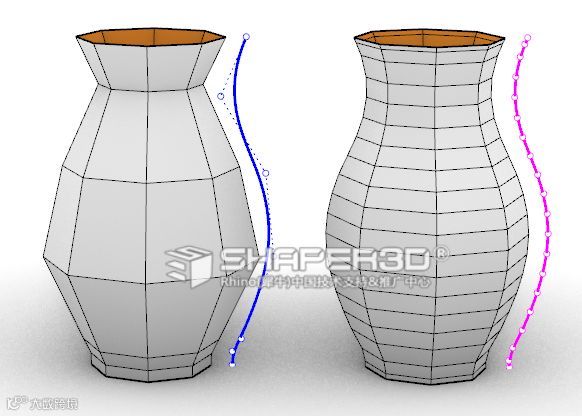 注意:以下分别关闭与开启SubDFriendly 选项,以相同阶数,通过相同位置点所绘制的两条控制点曲线,它们在形状上存在差别,因此建模时要多留意。