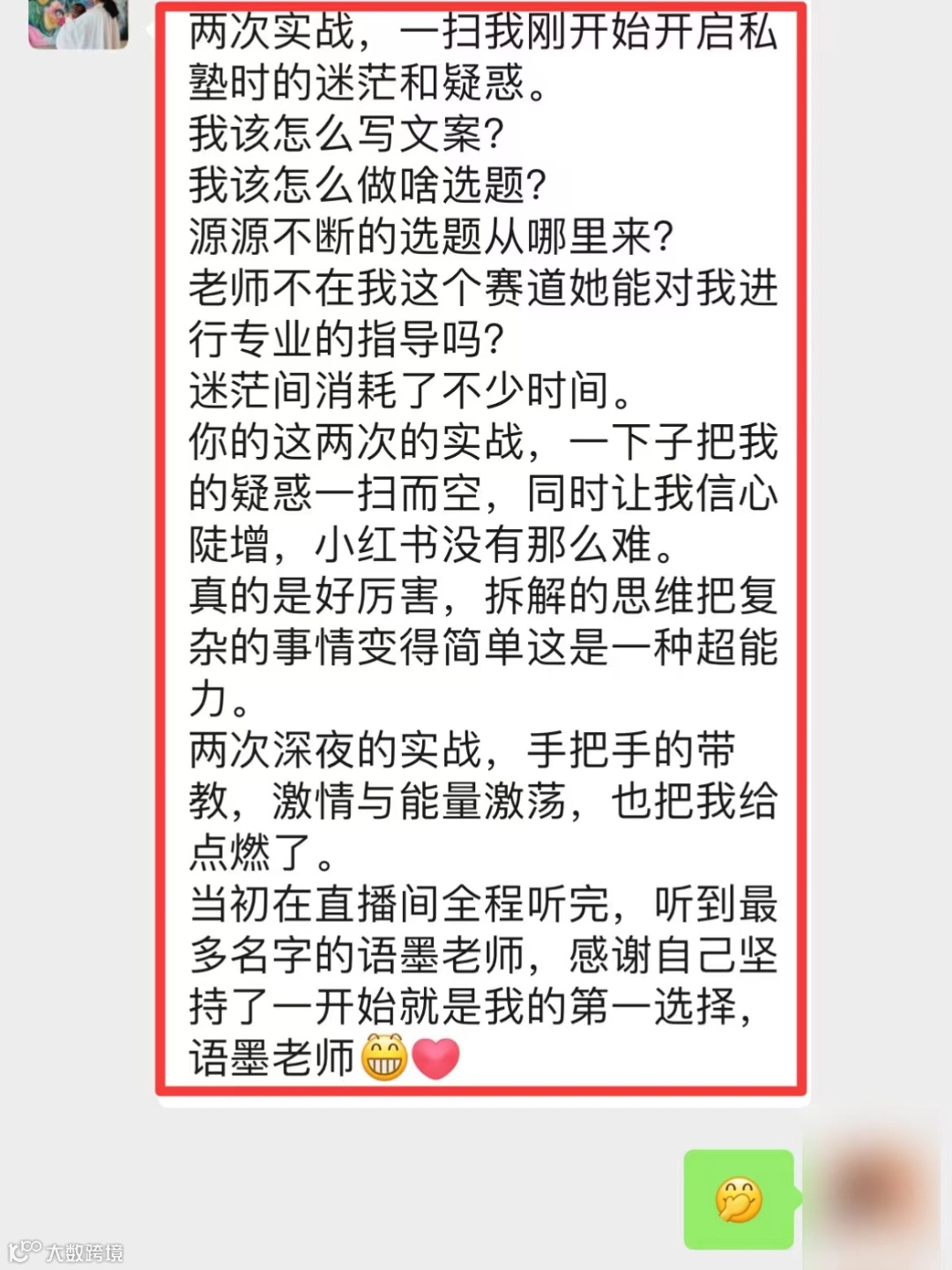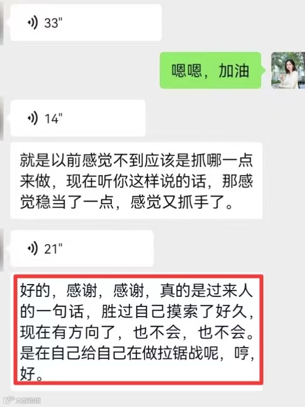 ✦“过来人的一句话,胜过自己摸索好久。”九九老师几句话,就帮他把思路打开了;