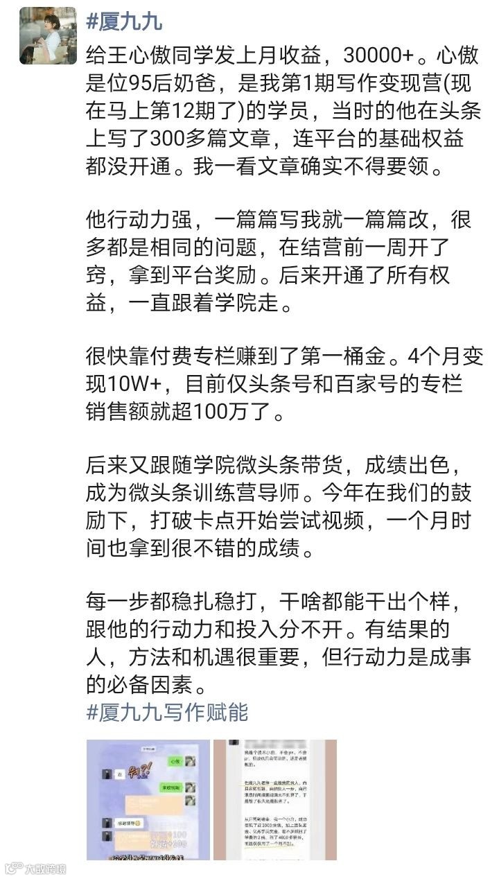 也有做传统业务的学员,在写作营听懂自媒体变现逻辑,一个多月时间成立公司,赚到了10万元。