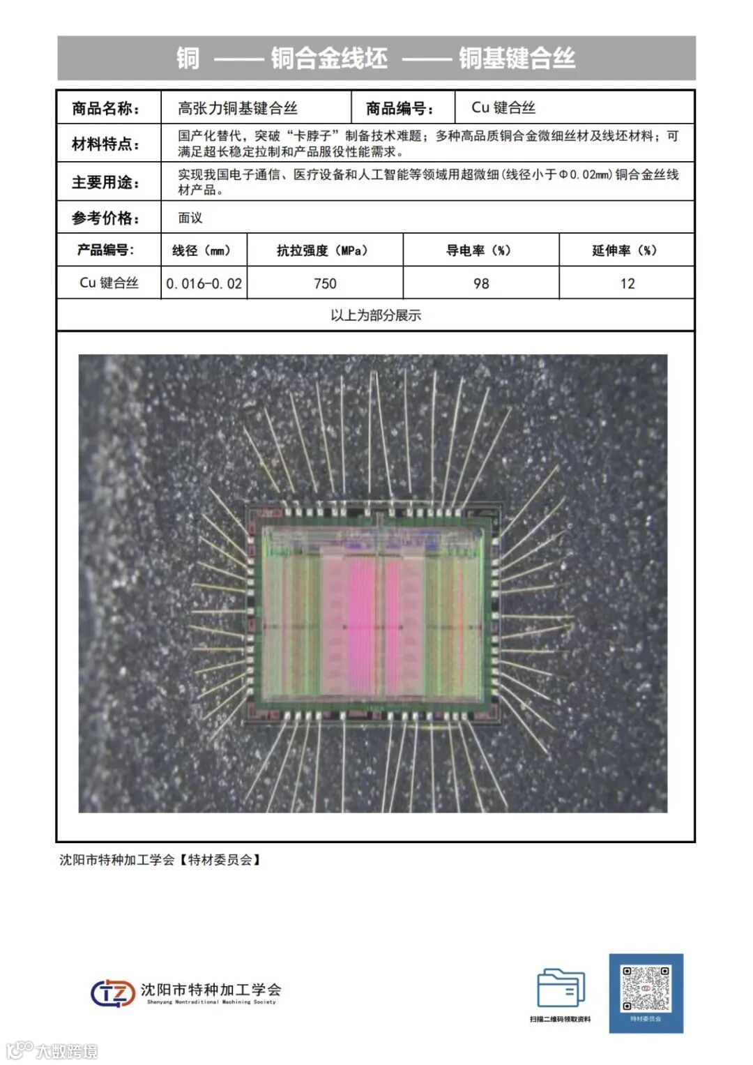 【产品宣传】特材|稀土高纯铜键合丝 沈阳特种加工