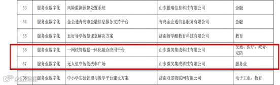2022年7月28日,山东省工业和信息化厅公布了山东省优秀数字解决方案导向目录(第一批)名单,山东微笑集成科技有限公司“一网统管数据一体化融合应用平台”和“无人值守智能洗车广场”两个方案入选山东省优秀数字解决方案导向目录(第一批)。