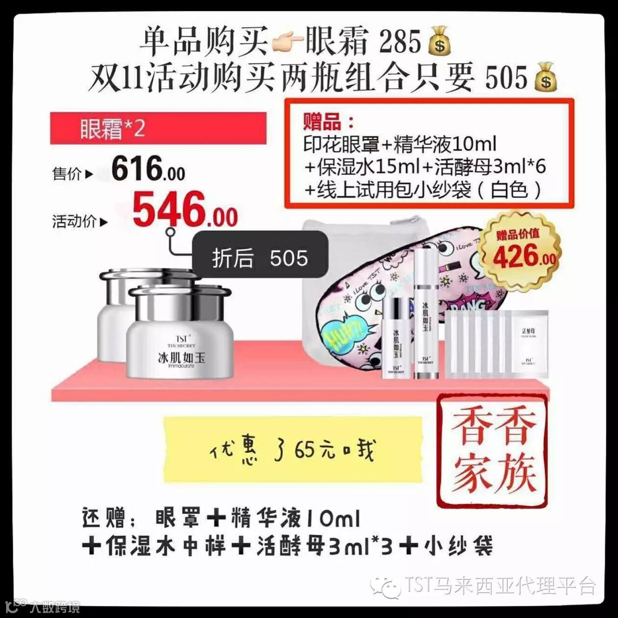 【TST六胜肽眼霜】一肽二肽达到保湿三肽四肽达到美白当眼霜达到六肽时已达到抗衰老和修复功能了而TST的眼霜就是六胜肽‼️平时一瓶️285️️‼️现在两瓶仅️505️️