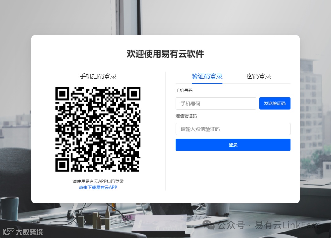 打开易有云软件,你需要先用手机号注册一个账号,随后使用你的账号密码登录。