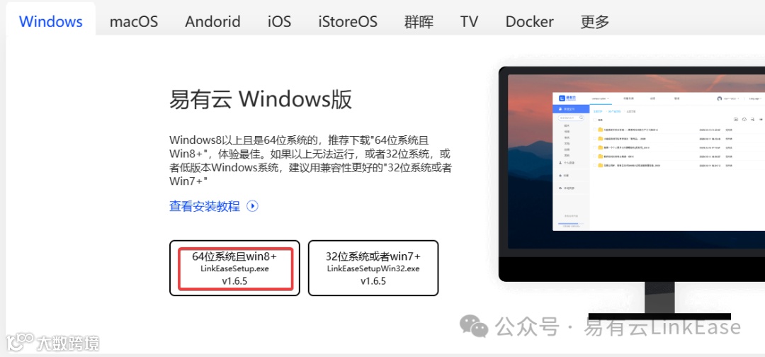 到 www.linkease.com 官网去下载并安装易有云软件到你的电脑上,只需按照提示操作即可完成。