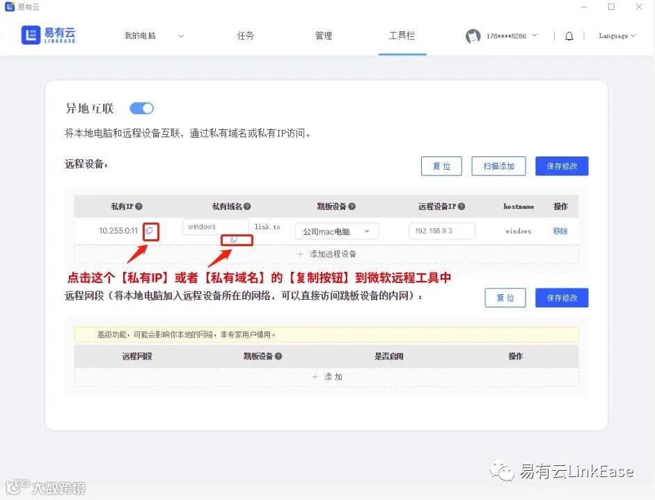 第五步:复制【私有IP】或【私有域名】到微软远程软件打开