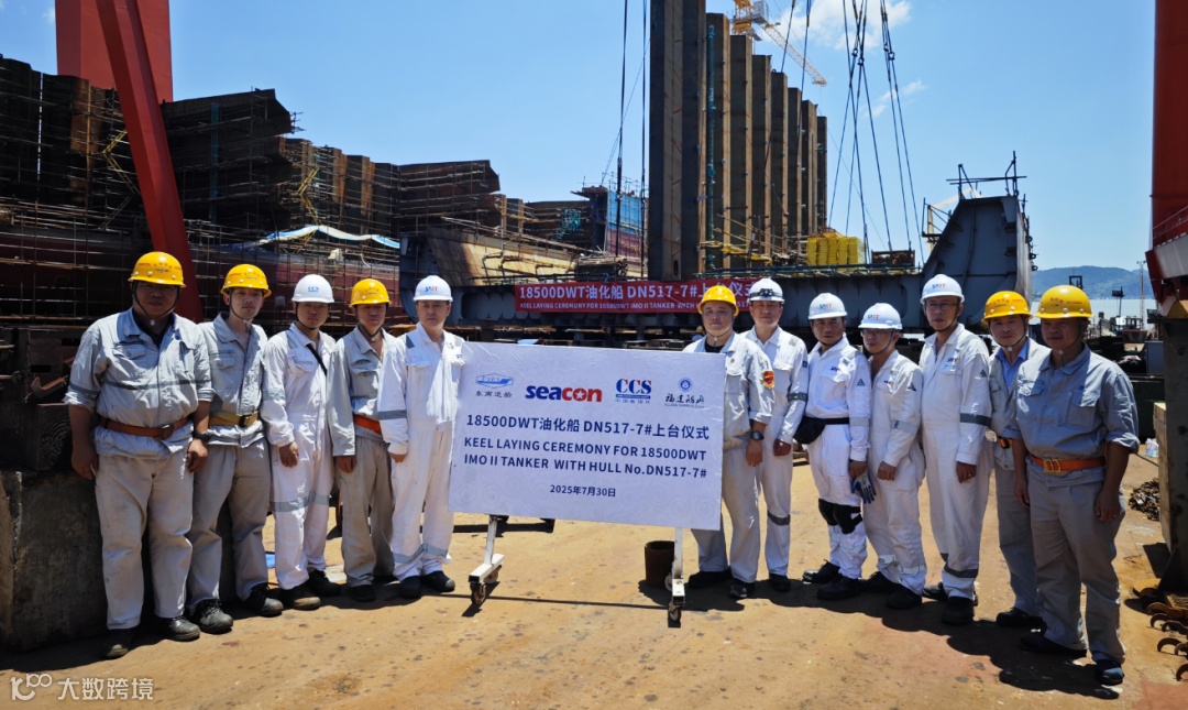 7月30日,福建船政旗下东南造船建造的18500DWT油化船(DN517-7)顺利上船台。
