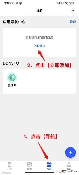 打开易有云APP,选择【导航】,在应用导航中心里点击【立即添加】。