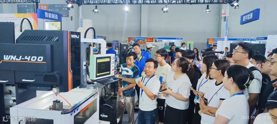 万能精机总经理丁瑞,雄峰机械总经理梁越,亚马森总经理翁红梅,沈阳市特种加工学会秘书长卢汉,海德激光总经理武昱,现场讲解电火花穿孔机,线切割的功能介绍,技术参数,产品优势等,并与观众热情互动。