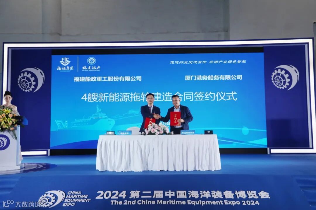 会上,福建船政分别与厦门港务船务、福建福港拖轮签订了5艘新能源拖轮建造项目订单,同时还与中船发动机、中船动力集团、WARTSILA FINLAND OY、KONGSBERG MARITIME AS等公司签订了8船套49100DWT油化船柴油机、2船套88.8米多用途平台供应船主推进系统、8船套5500车双燃料汽车滚装船RORO系统等采购项目订单。